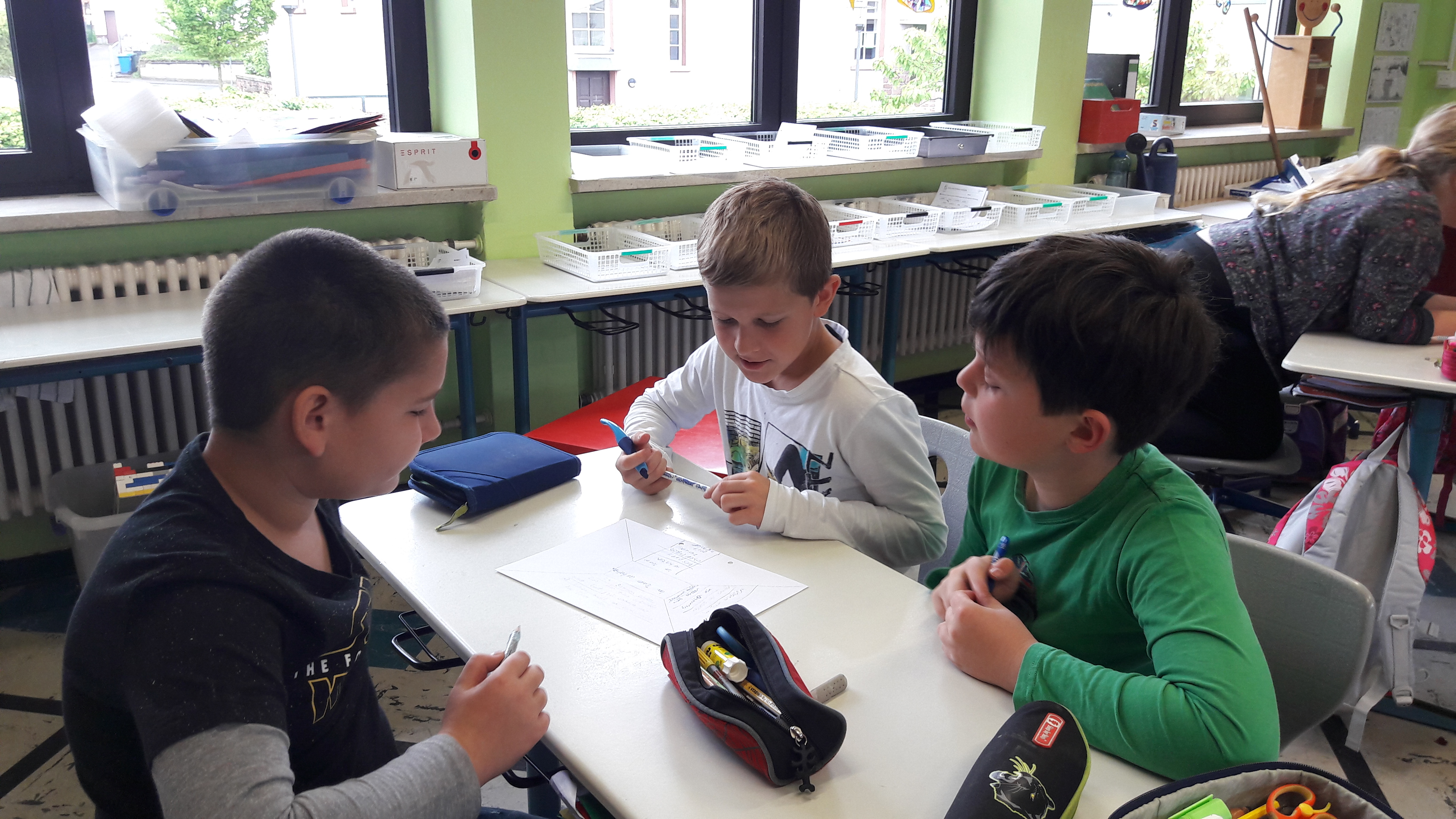 Inhalt des Methodentrainings ist das Erlernen elementarer Arbeitstechniken, wie z.B. handwerkliche Grundtechniken (falten, kleben, schneiden…), Heftseiten gestalten, Klassenarbeiten vorbereiten, wichtige Textstellen markieren, Informationen beschaffen. Darüber hinaus erlernen die Kinder Kommunikations- und Kooperationstechniken wie z. B. Partner- und Gruppenarbeit, Rollenspiele, aktives Zuhören und Feedback geben. Damit die Schüler der Grundschule im Grünen möglichst vielfältige Methoden kennen lernen, finden die Methodentage möglichst einmal im Schulhalbjahr statt.